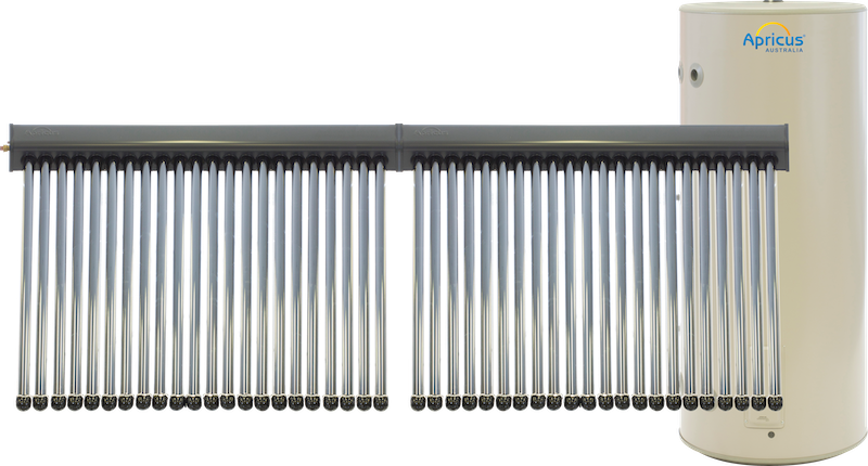Apricus 44 Tube 400l Solar Hot Water System – Glass Lined Electric Boosted