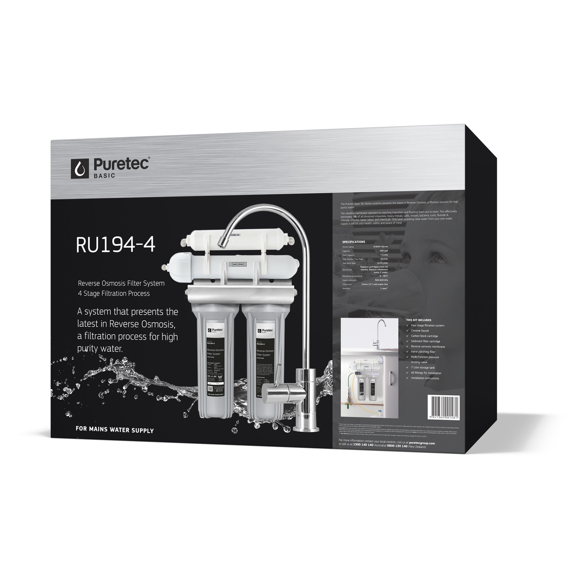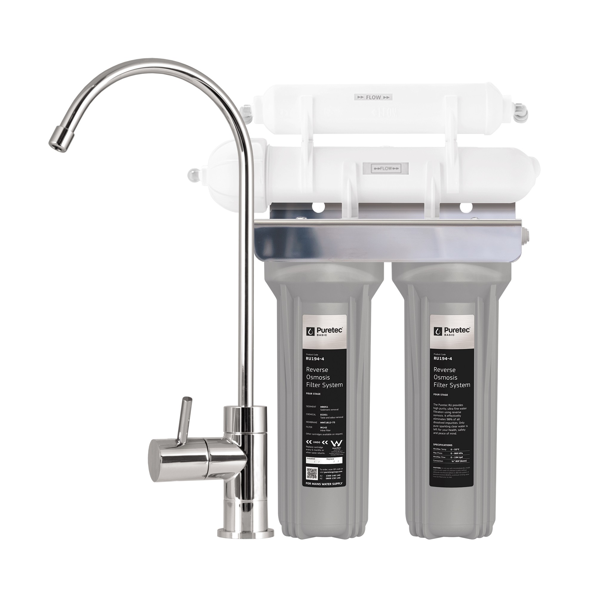 R.o.under-sink,4 Stage, 283lpd, Includes Tank P.a. Membrane 0.5 Micron Carbon Block 5 Micron Sediment Cartridge 142 Inline 5 Micron Cartridge Ru194-4 Ru194-4